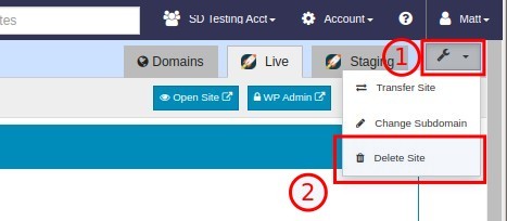 WARNING: As shown in the dialog, deleting a site will remove the entire site, all staging copies and clones, and all backups. This cannot be undone. If you're not sure about deleting your site, you may consider one of the options above, either Disabling the site, or Removing the Domain.
