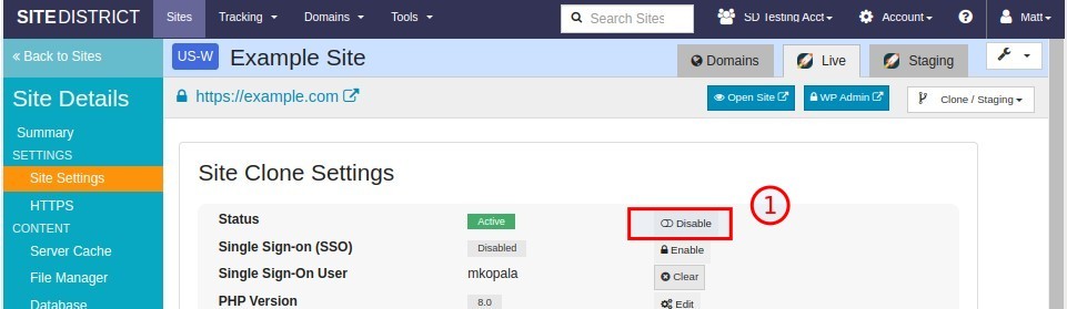 Another option for taking a site offline is to remove the live domain from the site. This can be done from the Domains tab under the Site Details view.